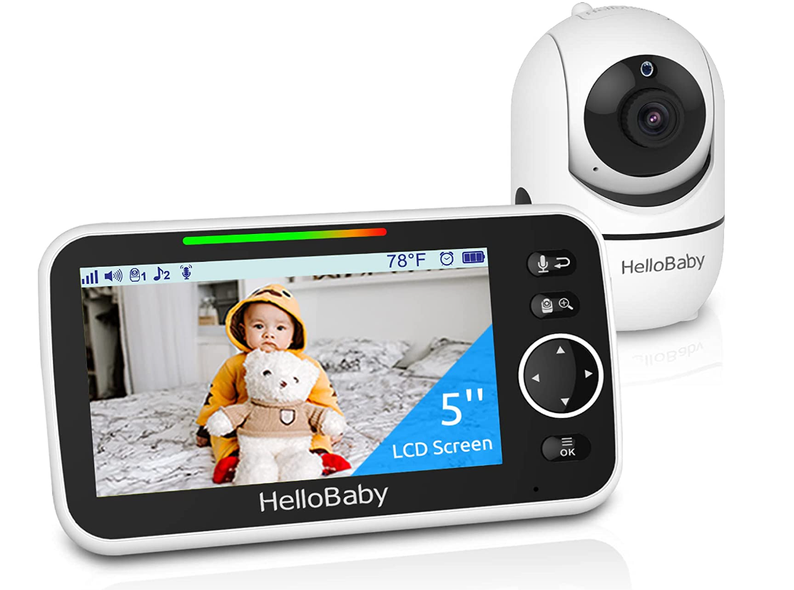 Monitor remoto de 355° de panorámica e inclinación para bebé y pantalla a color de 5 pulgadas】: este monitor de cámara para bebé viene con una pantalla grande de 5 pulgadas. La cámara de control remoto gira 355° en horizontal y vertical de 120° te da una visión más grande de la habitación de tu bebé. También con función de zoom 2X, puedes ver a tu bebé más claramente.