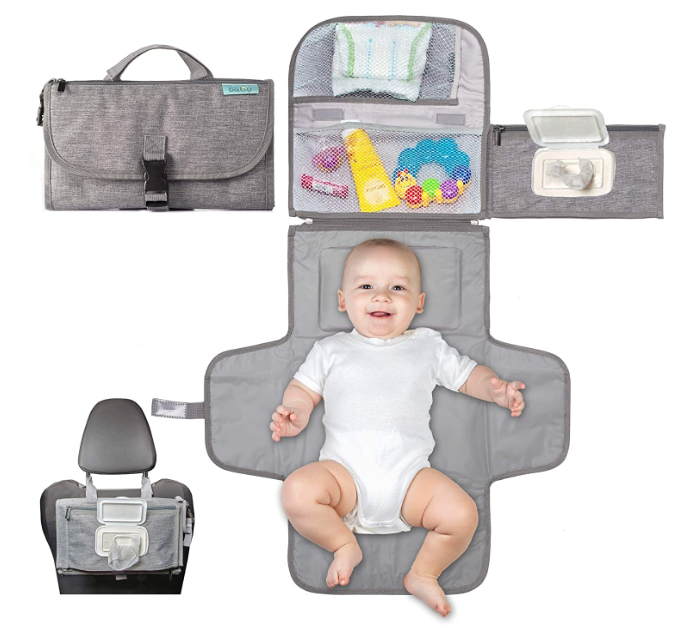 Kopi Baby – Cambiador portátil de pañales para niñas y niños recién nacidos, cambiador de bebé con bolsillo para toallitas inteligentes, kit de cambiador de viaje impermeable, regalo de bebé