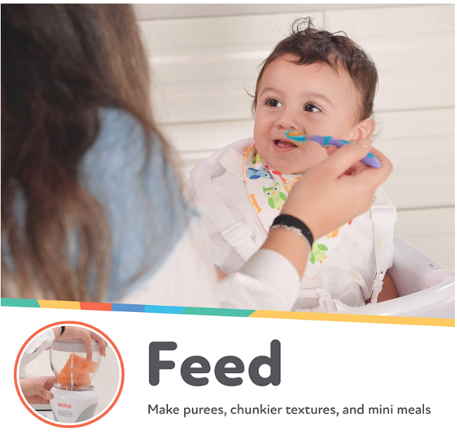 - Para diferentes etapas de destete, ajuste la licuadora para hacer purés perfectos en la primera etapa, texturas más gruesas en la segunda etapa y mini comidas en la tercera etapa.
