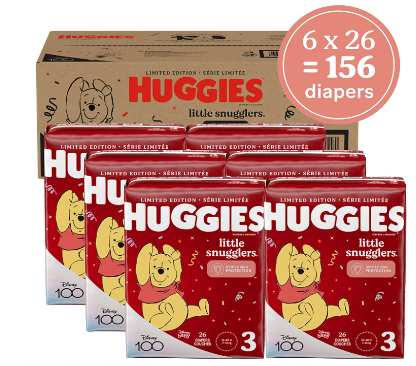 Pañales para bebé talla 3 (16-28 libras), 156 unidades, Huggies Little Snugglers