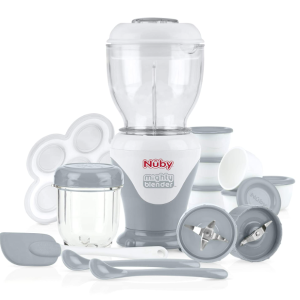 Nuby Mighty Blender with Cook Book, 22-Piece Baby Food Maker Set, Cool Gray
