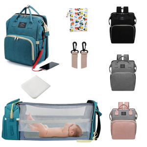 Mochila de pañales con estación de cambio, bolsa de pañales plegable de viaje 7 en 1
