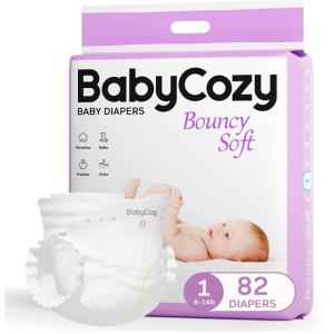 Babycozy Boucy – Pañales suaves para recién nacidos para piel sensible, pañales desechables hipoalergénicos, pañales blancos lisos sin cloro, pañales suaves para bebés y bebés prematuros, talla 1 (8-14 libras), 82 unidades